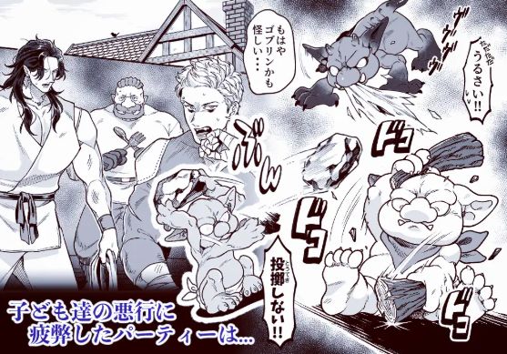 成長した子ゴブリンたちの悪事に疲弊するパーティーメンバーとある人物に子どもたちを預ける事に成功し、やっと一息…かと思いきや子どもと距離をおいたせいでスムタの腹の紋が次の子種を求めて暴走してしまう。